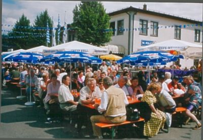 Die Lindenstraße war als großer bunter Festplatz mit Straßencafes, Schmankerl-oasen und Verkaufs-ständen gestaltet.